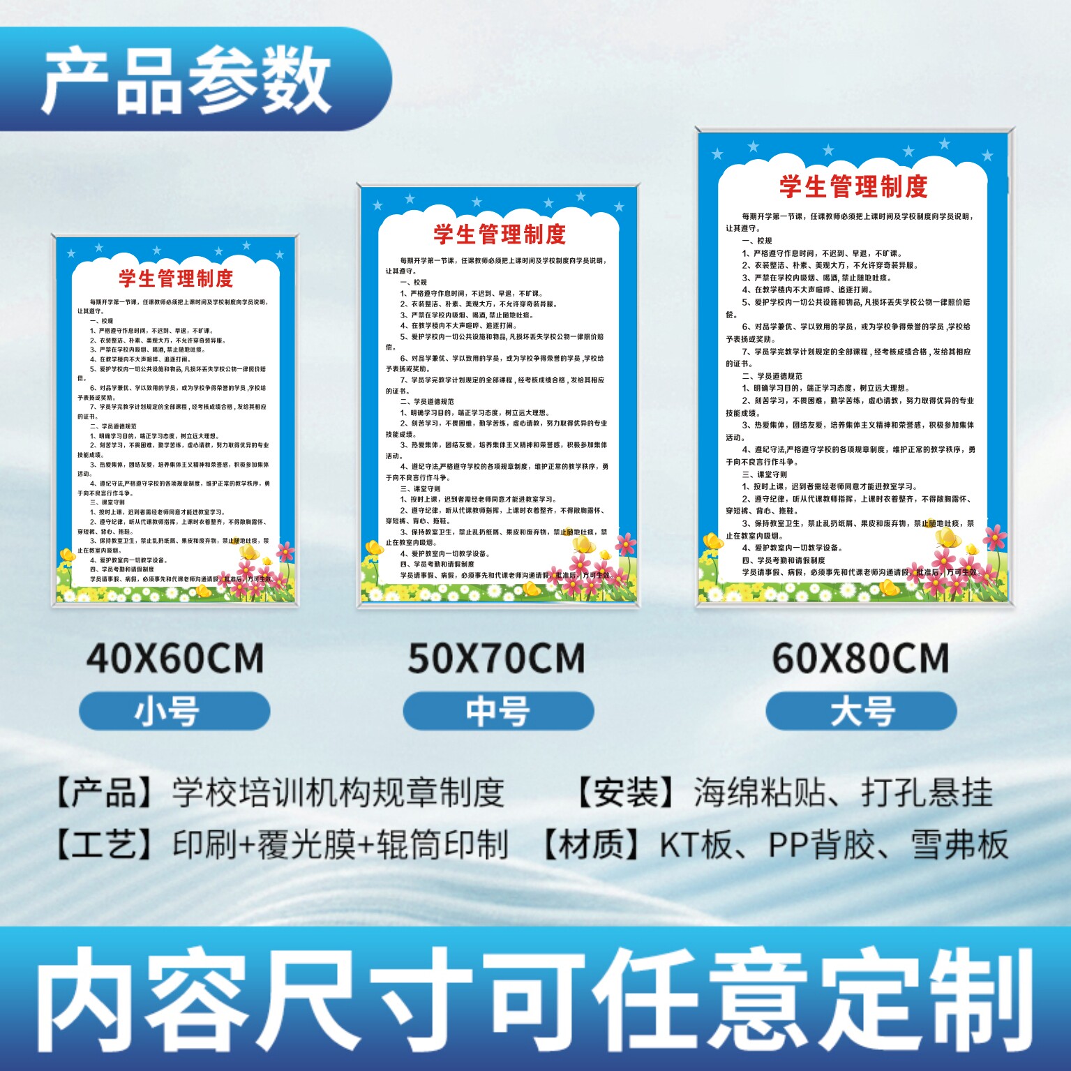 新版艺术学校校外培训机构教育规章制度上墙 学生安全管理牌 挂图