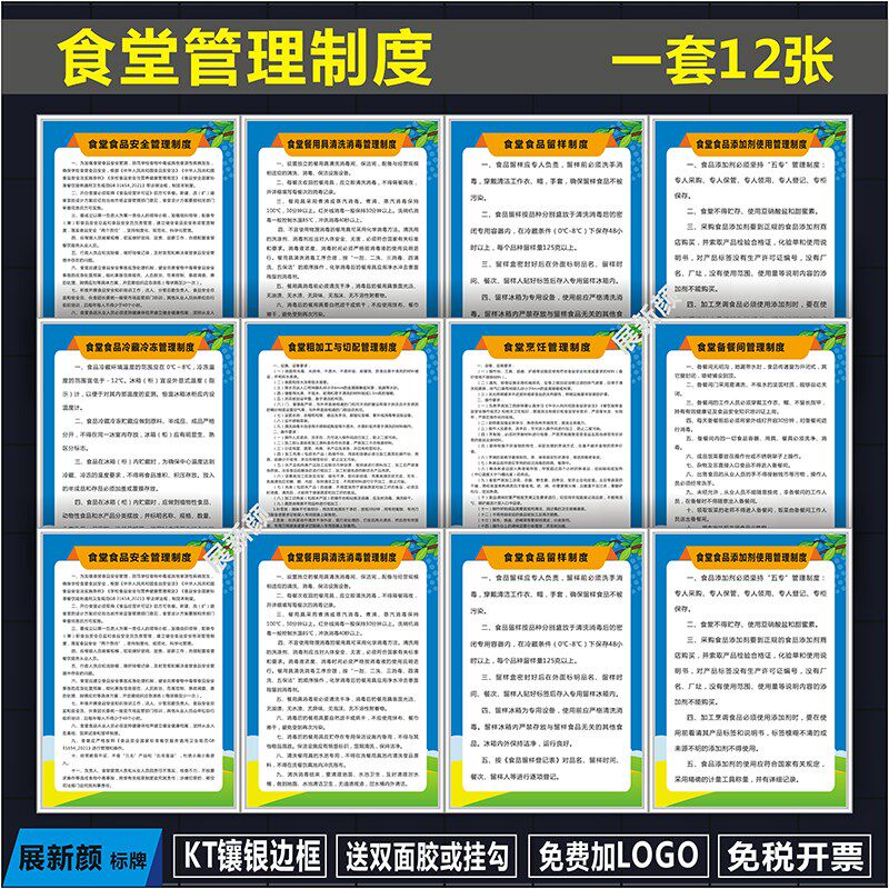 食堂制度牌学校/幼儿园/企业单位餐厅展板挂图食品卫生安全标识牌