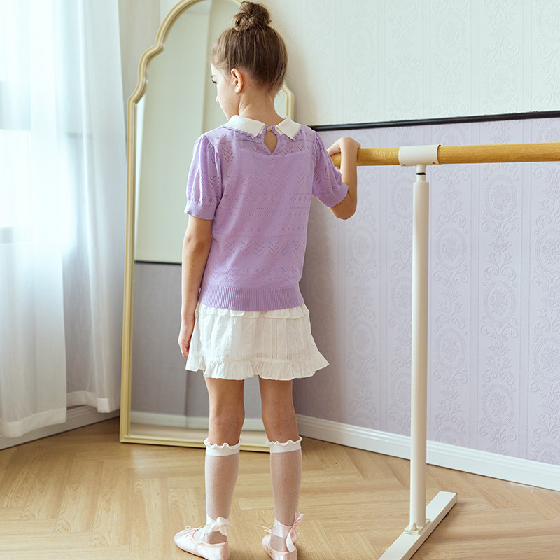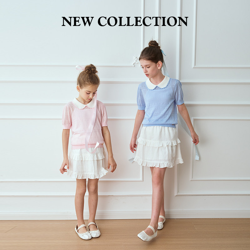 轻氧芭蕾eland kids衣恋童装女童针织衫夏娃娃领凉感短袖毛衣薄款