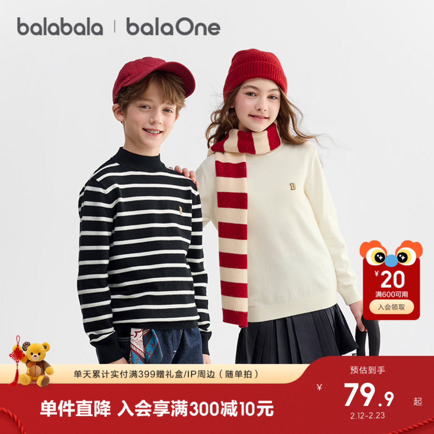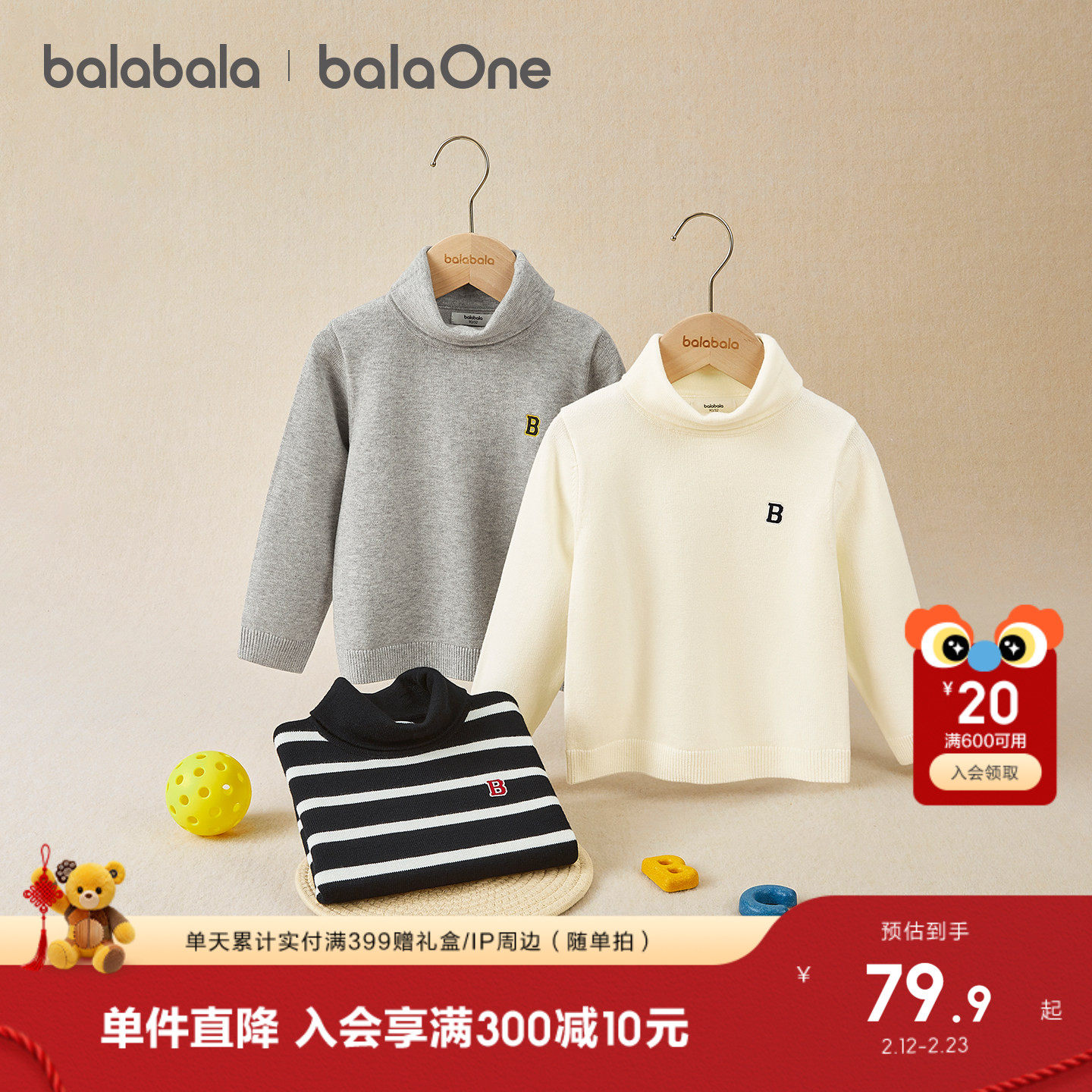 巴拉巴拉童装儿童毛衣男童女童2025新款套头针织衫冬中高领打底衫
