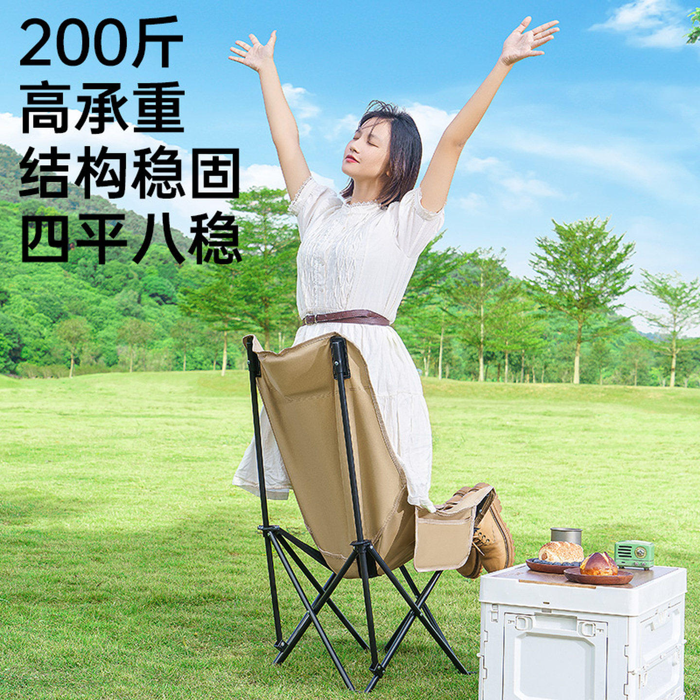 户外折叠椅加高月亮椅可调节露营椅子便携式躺椅沙滩钓鱼野餐椅凳