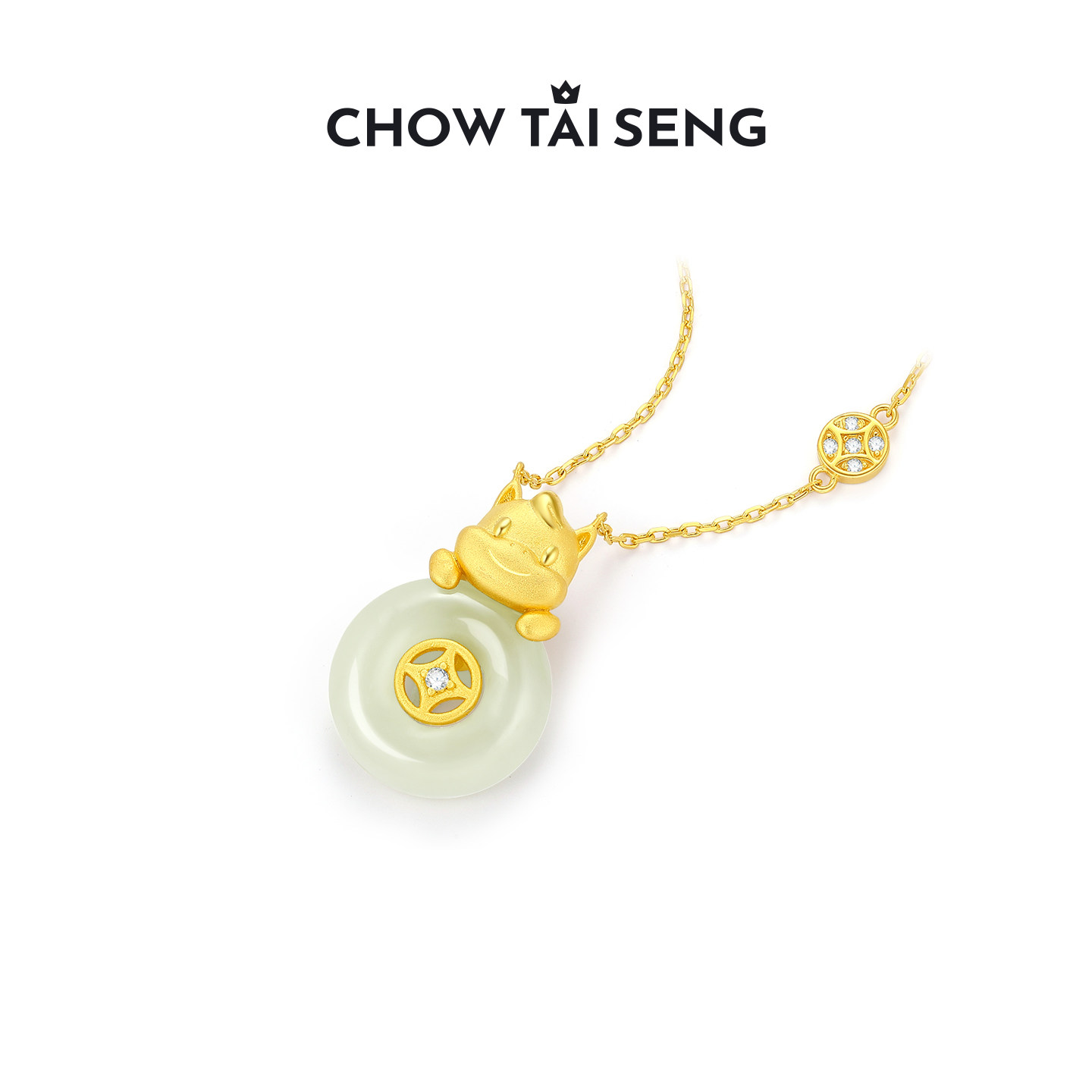周大生福气平安扣项链女S925银玉髓吊坠轻奢本命年送妈妈生日礼物