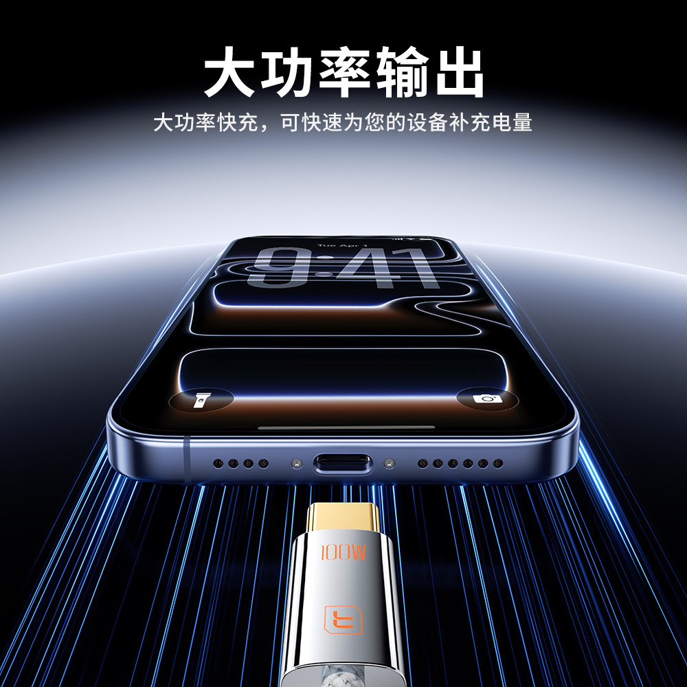 toocki图奇100W数据线typec超级快充适用华为vivo小米OPPO充电线苹果17iPhone15手机6A闪充线USB转双C口电脑