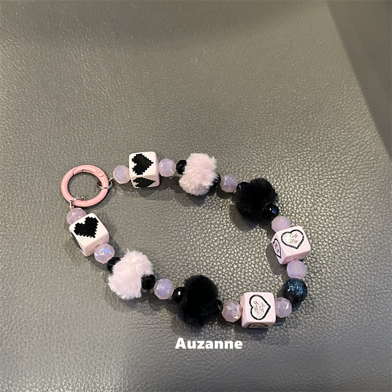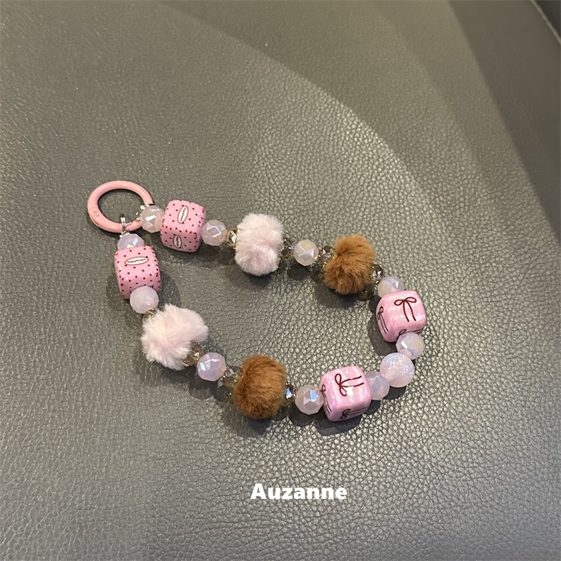 秋冬格纹蝴蝶结串珠挂炼适用于车钥匙书包耳机壳挂饰品