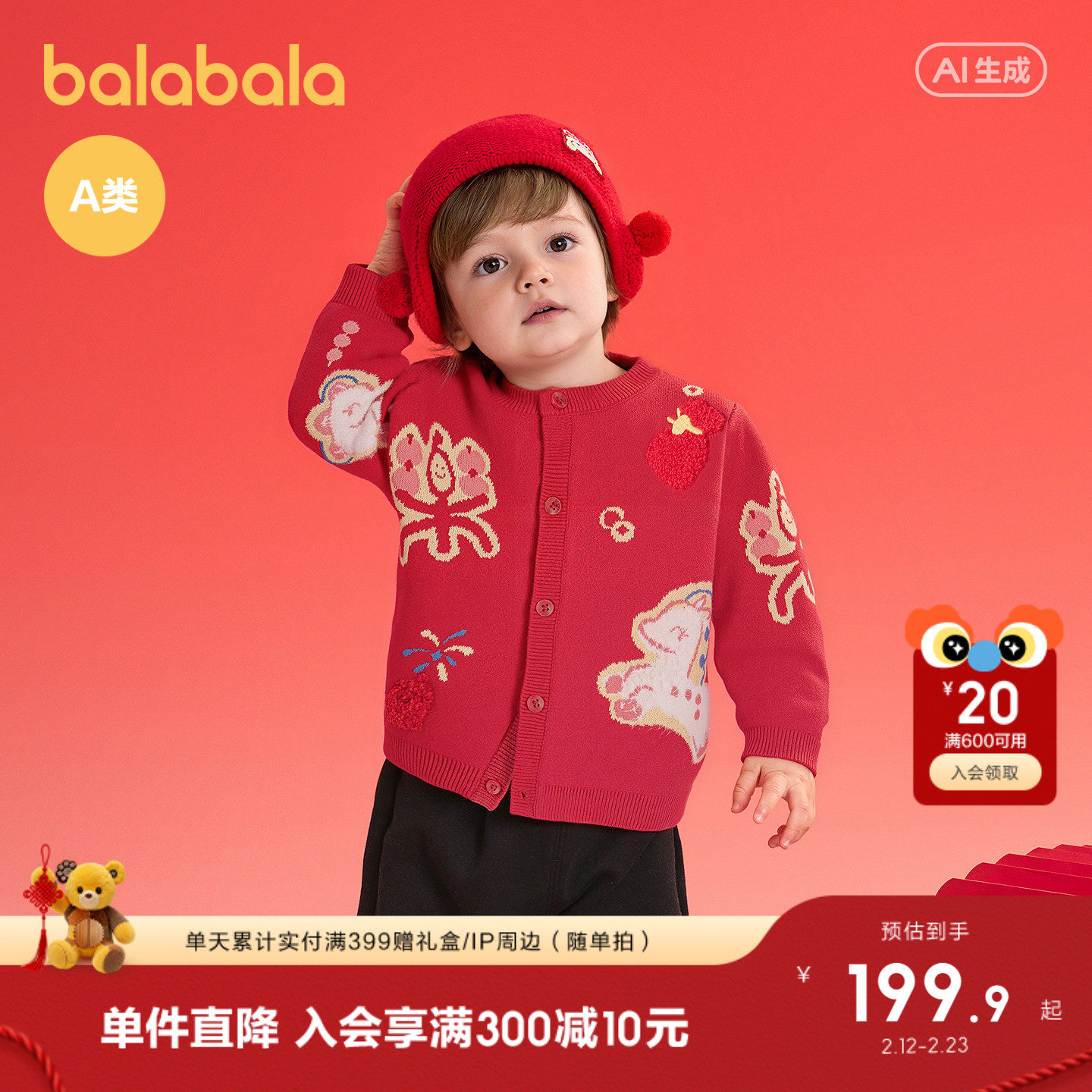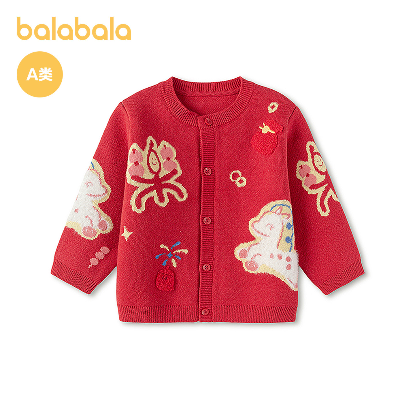 【商场同款】巴拉巴拉童装宝宝毛衣儿童线衫2026新款针红色拜年服