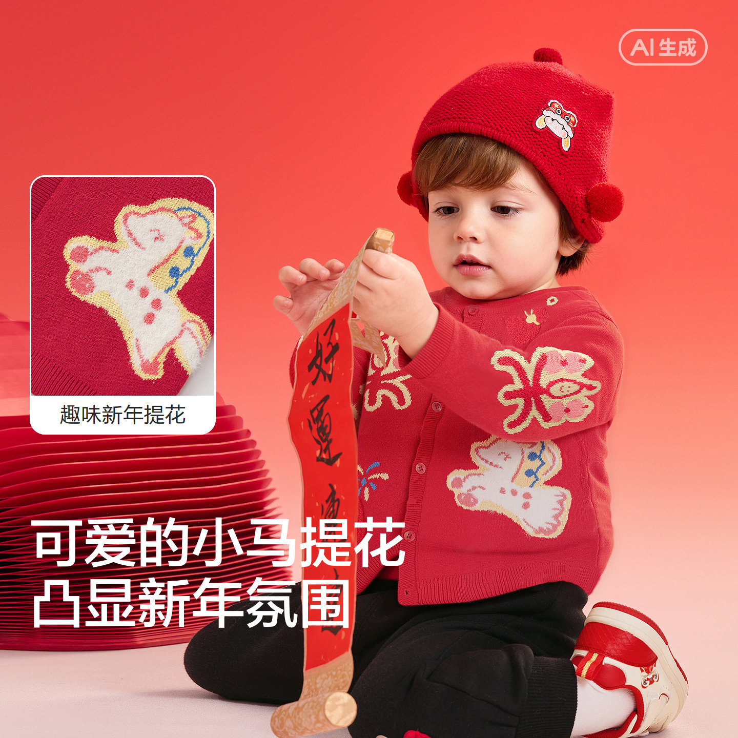 新年插画提花,凸显新年氛围