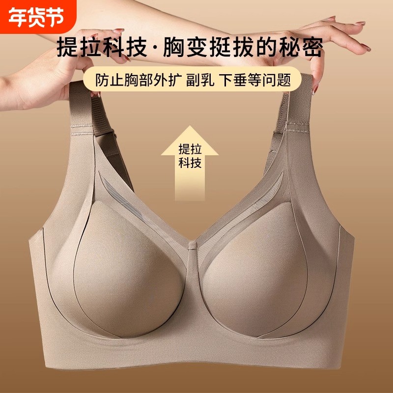 润微提拉内衣女大胸显小无痕防下垂收副乳胸罩爆款隐形粉底液文胸