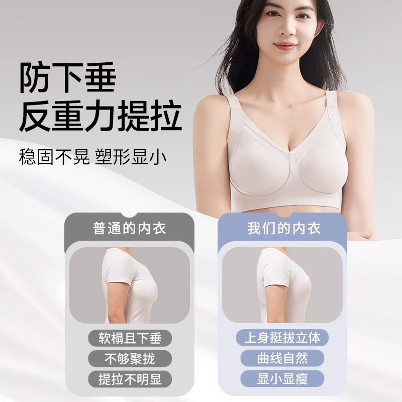 润微提拉女王内衣女大胸显小无痕大码调整防下垂收副乳粉底液文胸