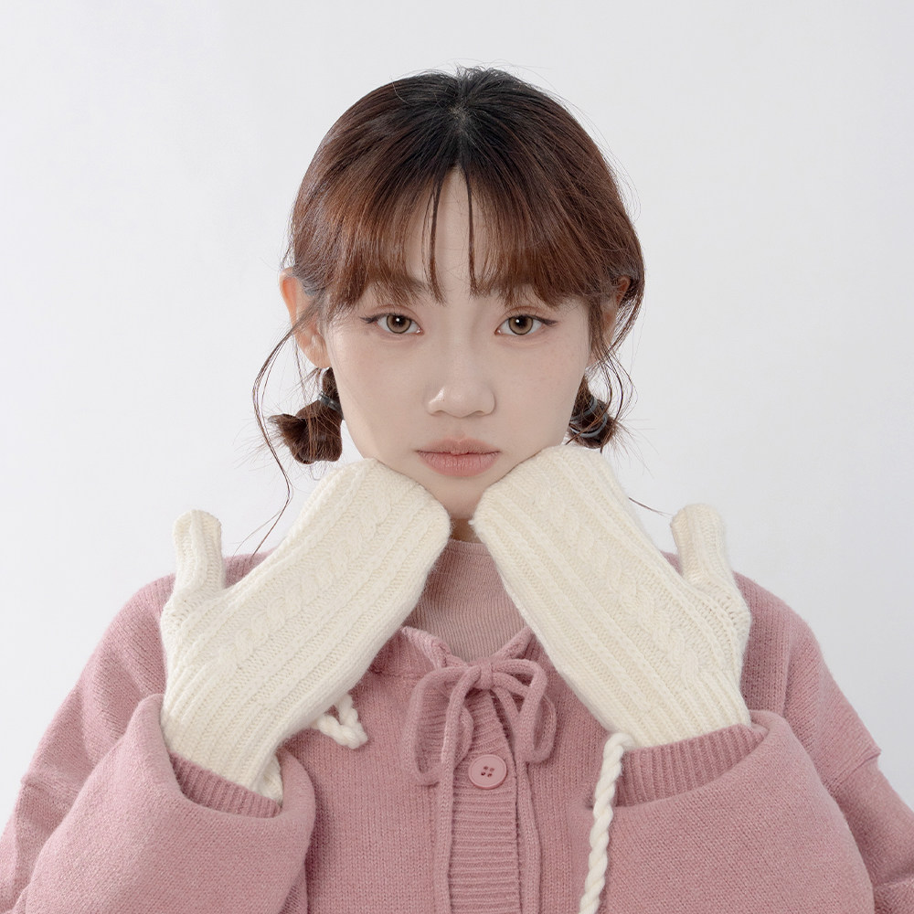 QUEENSHOP 2025秋冬新品女装麻花挂脖造型保暖针织手套07130049