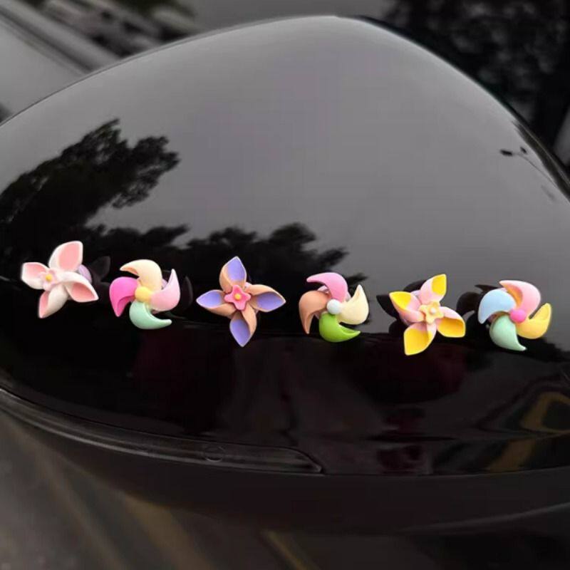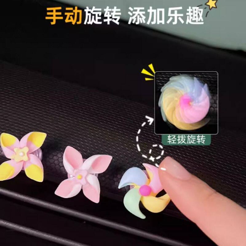 车载新款小风车旋转陀螺创意装饰贴小摆件中控台车内饰品女士可爱