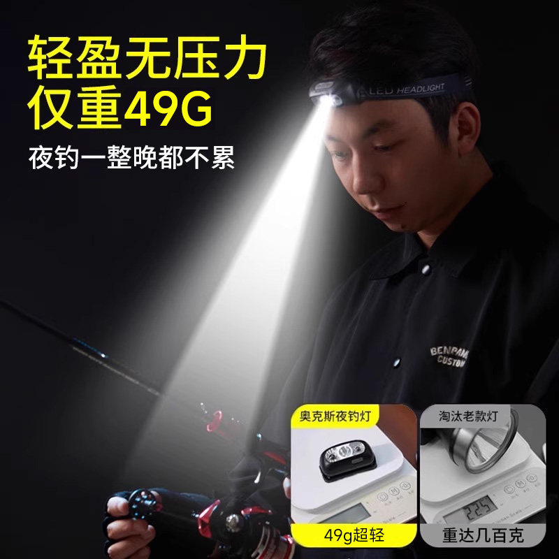 奥克斯头灯超长续航2025新款强光超亮钓鱼专用感应头戴式照明灯