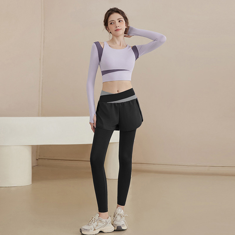 健身服长裤高级感女春夏季防走光修身速干遮屁股假两件瑜伽运动裤