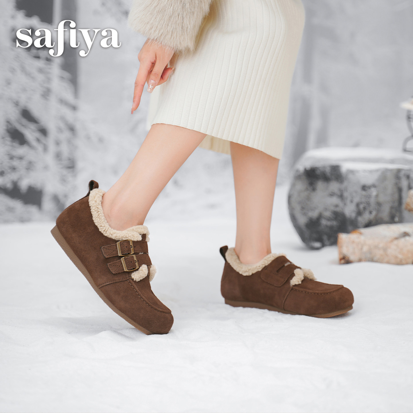 Safiya/索菲娅2025年冬季新品踩屎感加绒外穿百搭毛毛鞋雪地靴女