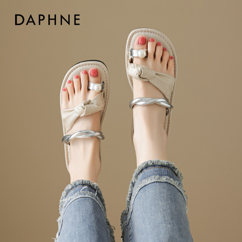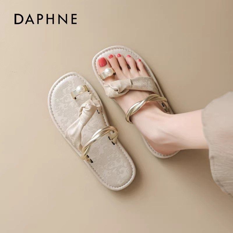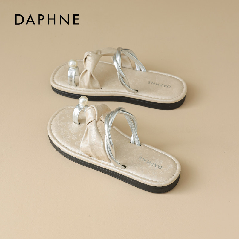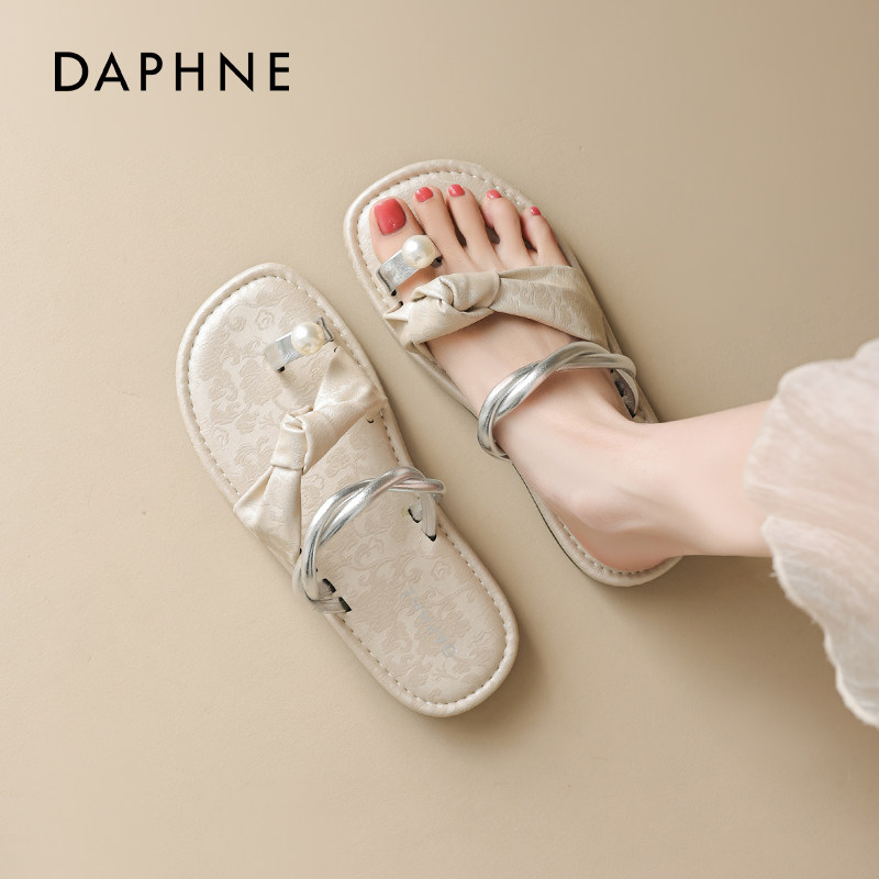 达芙妮平底拖鞋女2026夏季新款法式绝美海边外穿透气休闲夹趾凉鞋