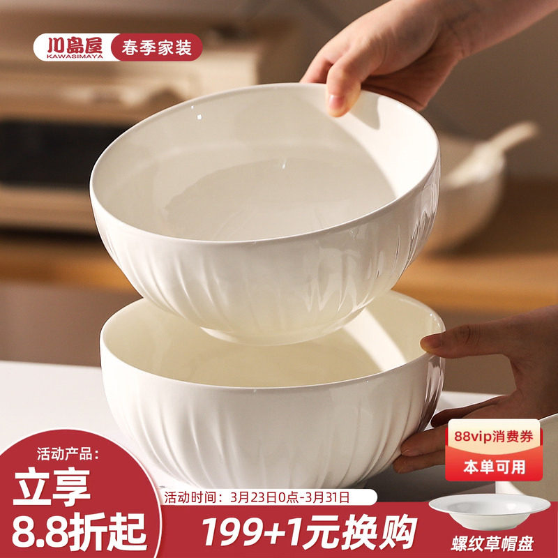川岛屋白色8寸汤碗家用2026新款高颜值大号汤面碗釉下彩陶瓷大碗