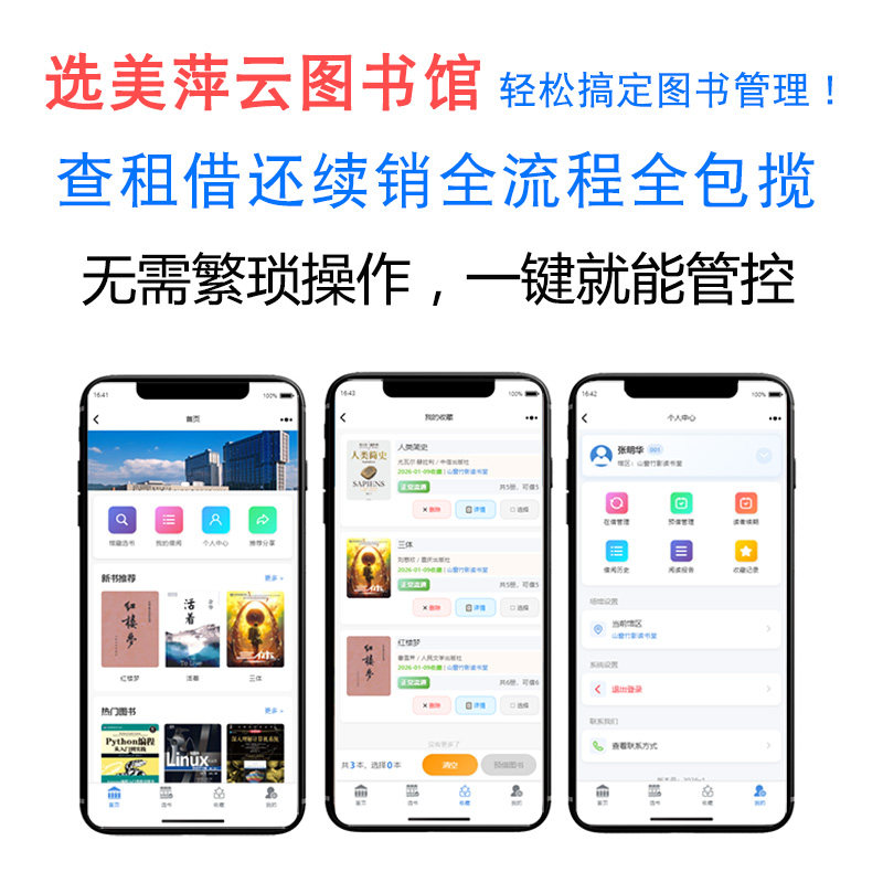 美萍云图书手机绘本馆书籍借阅管理软件云平台系统自动扫描录入
