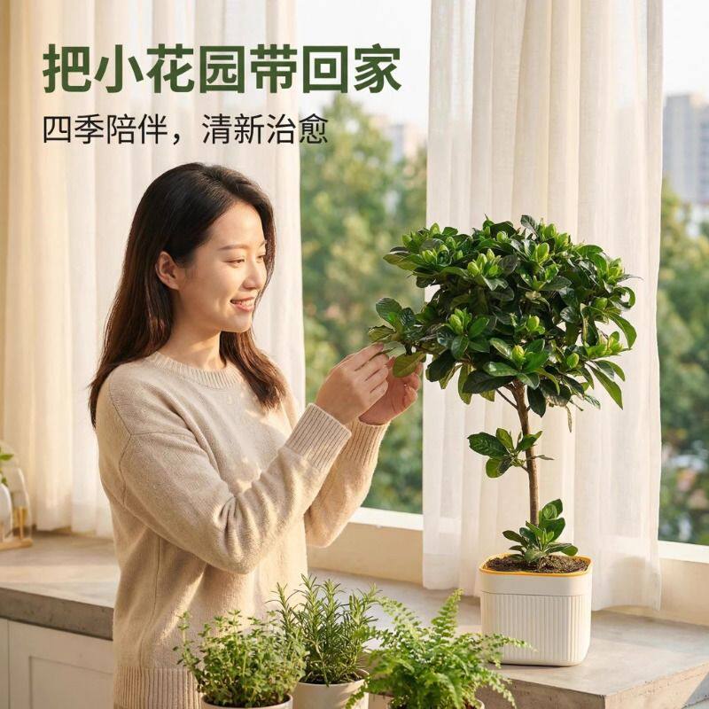 棒棒糖栀子花盆栽绿植造型室内办公桌面卧室窗台客厅带花阳台室外