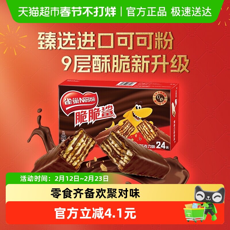 【旗舰店】雀巢脆脆鲨威化饼干巧克力牛奶味24条单独包装休闲零食