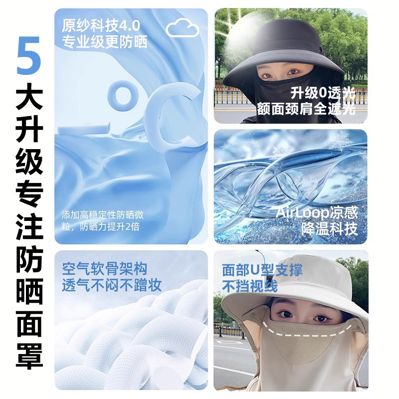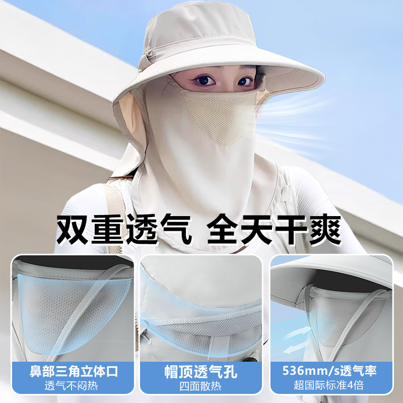全方位防晒帽透气遮脸面罩护颈一体太阳帽防紫外线户外遮阳帽女夏