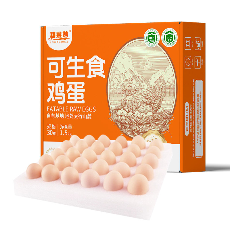 蛋蛋小盆友可生食新鲜鸡蛋无腥无抗无菌高蛋温泉白溏心蛋30枚
