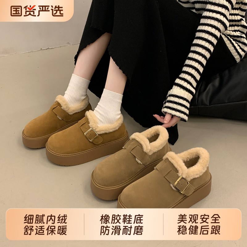 厚底加绒豆豆勃肯鞋女2025新款秋冬外穿毛毛鞋防滑保暖棉鞋雪地靴