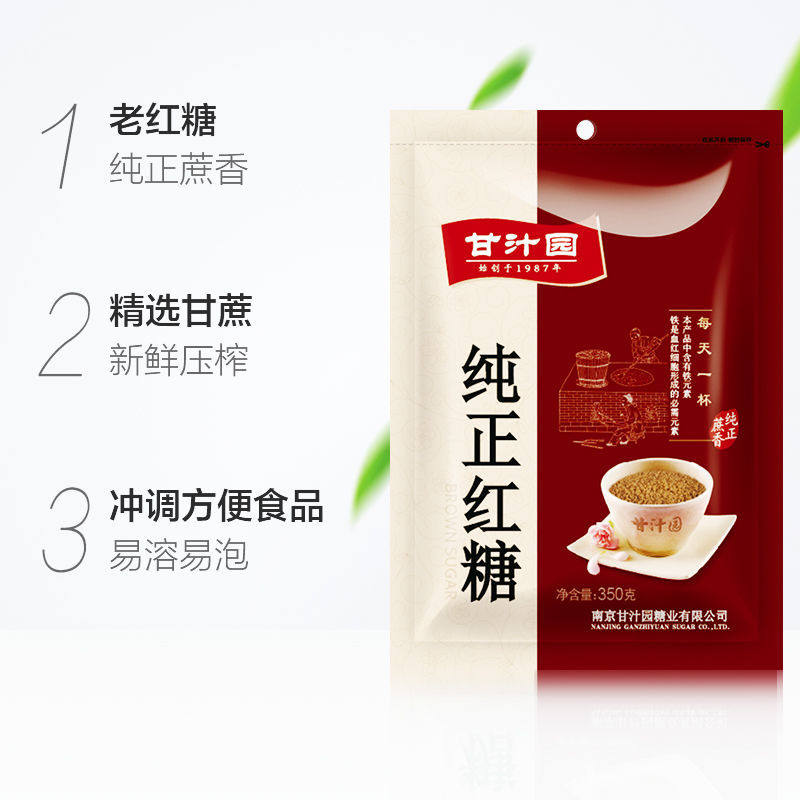 甘汁园纯正红糖姜茶350g痛经正宗月子甘蔗红糖月经期补铁姜汁