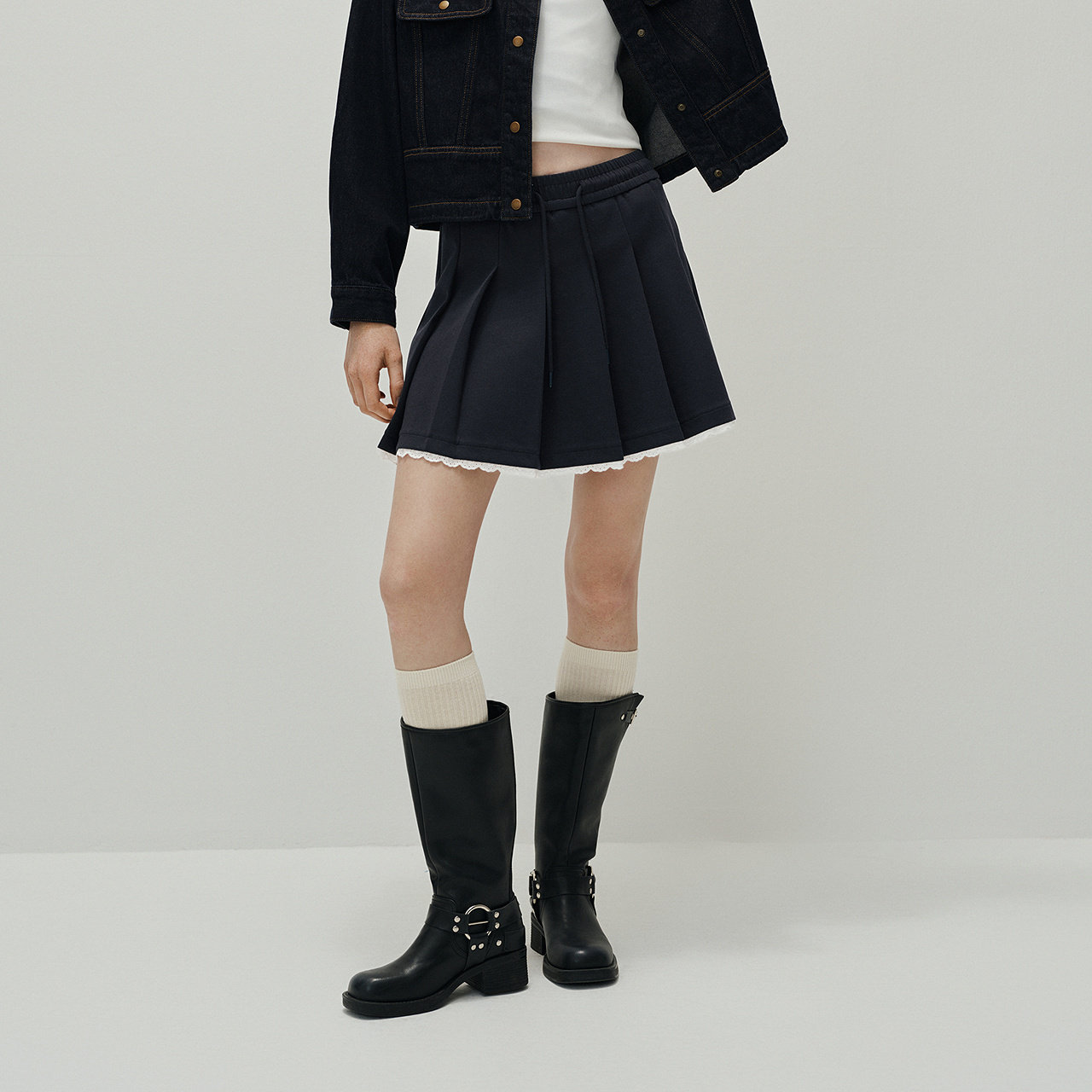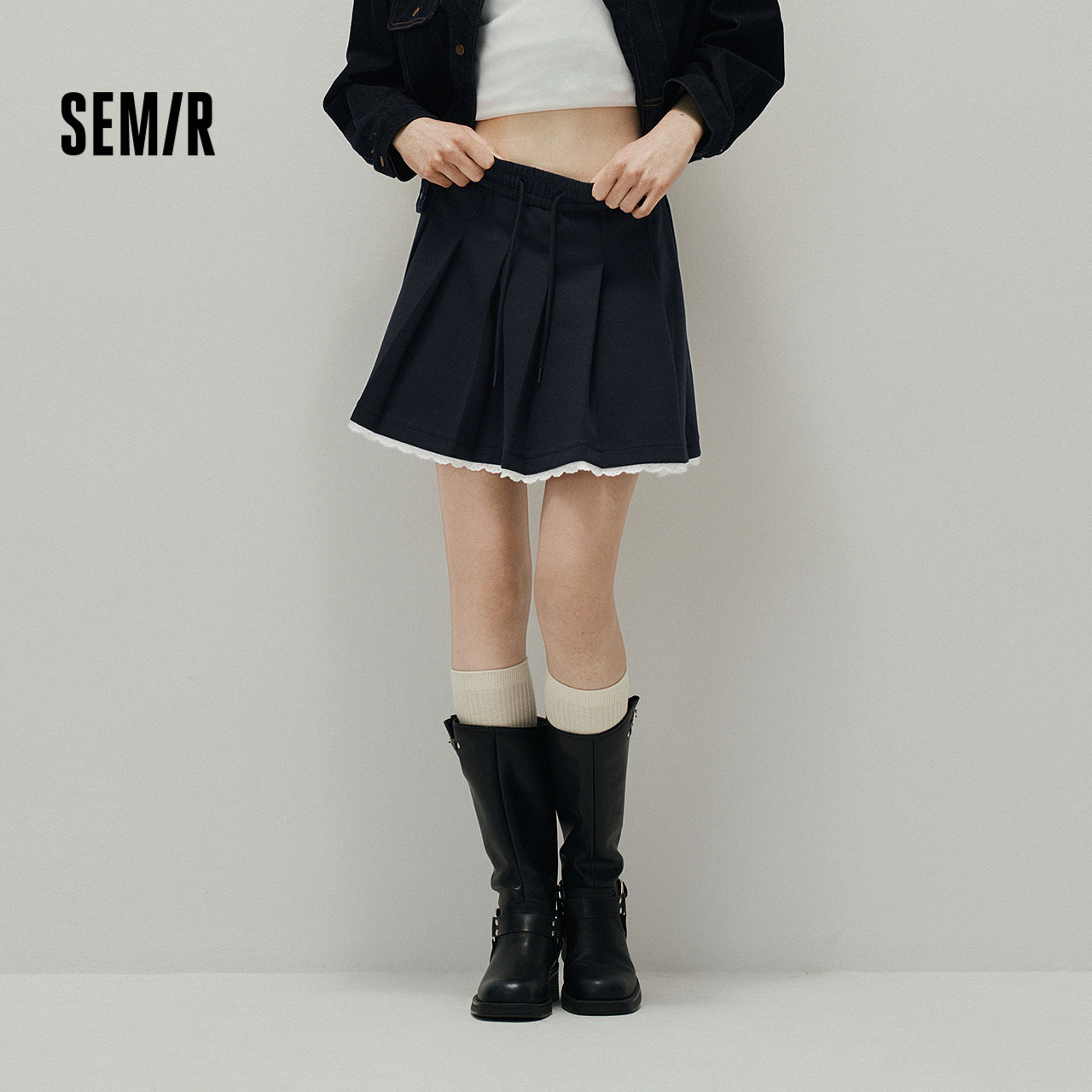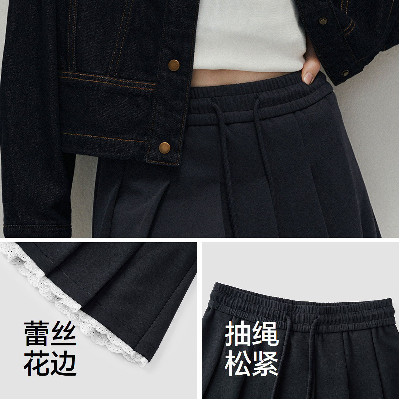 少女感蕾丝花边 舒适抽绳松紧腰 俏皮百褶裙