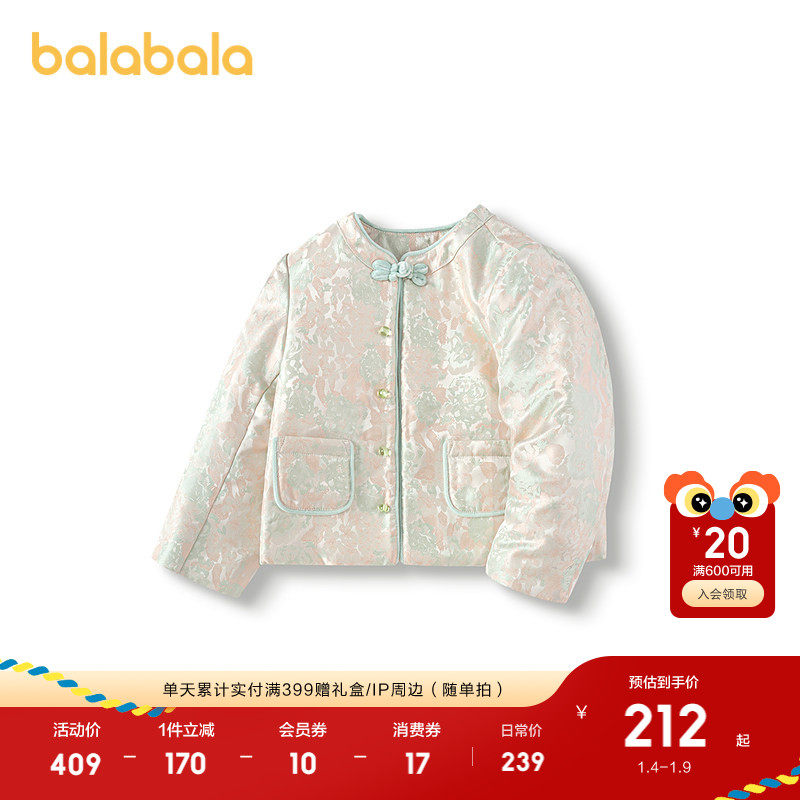 巴拉巴拉童装女童棉服新中式国风提花外套儿童春装棉衣洋气撞色