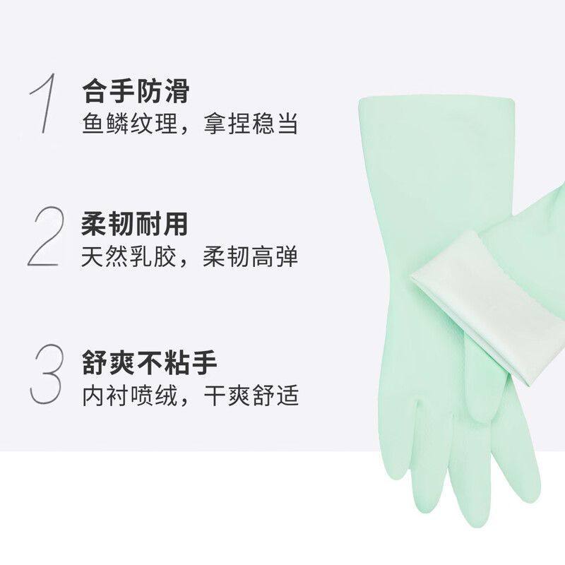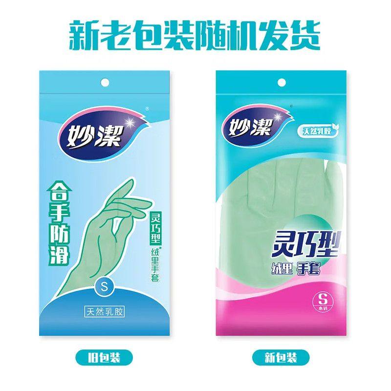 妙洁洗碗橡胶手套防水乳胶灵巧型厨房耐用洗衣家务非加绒款绒里
