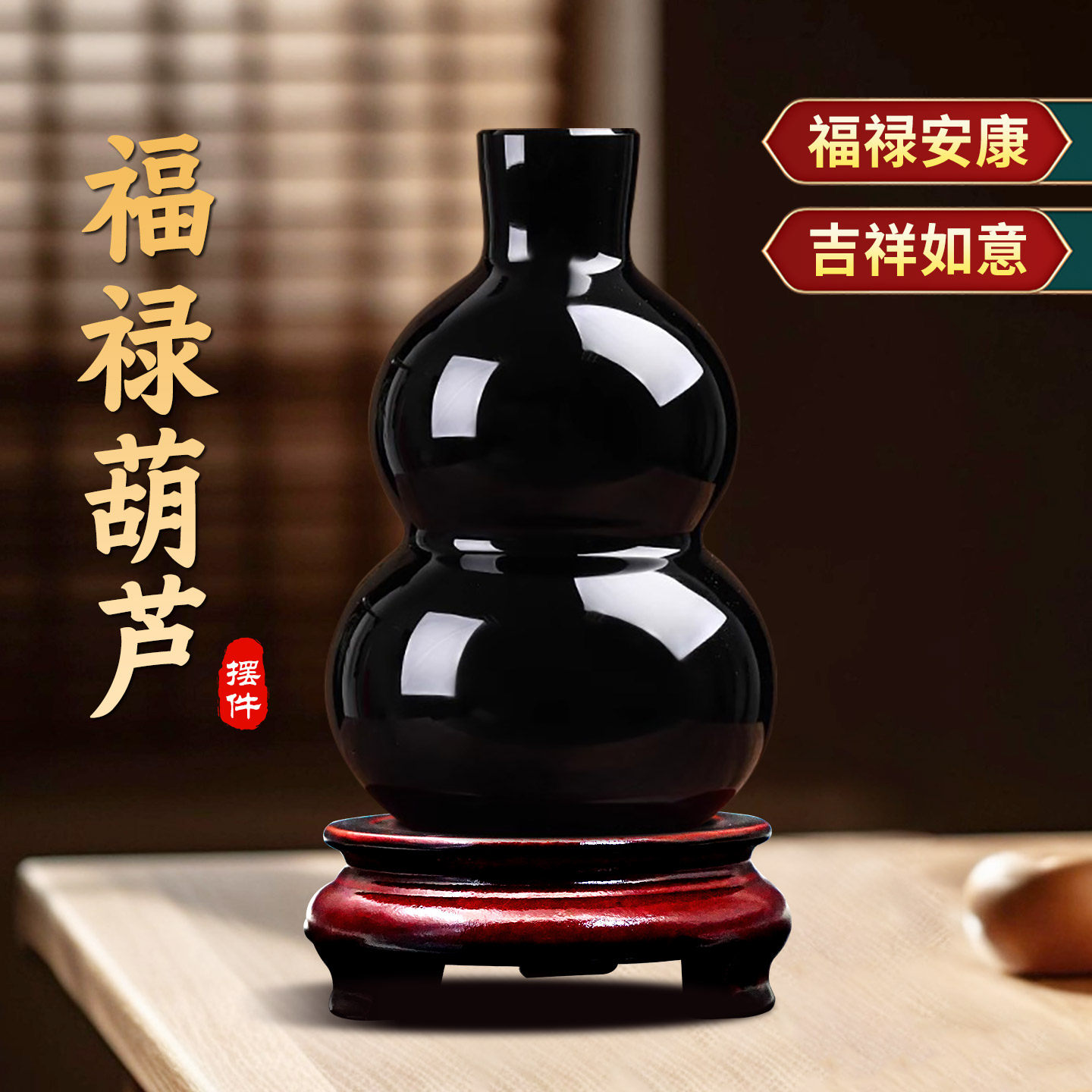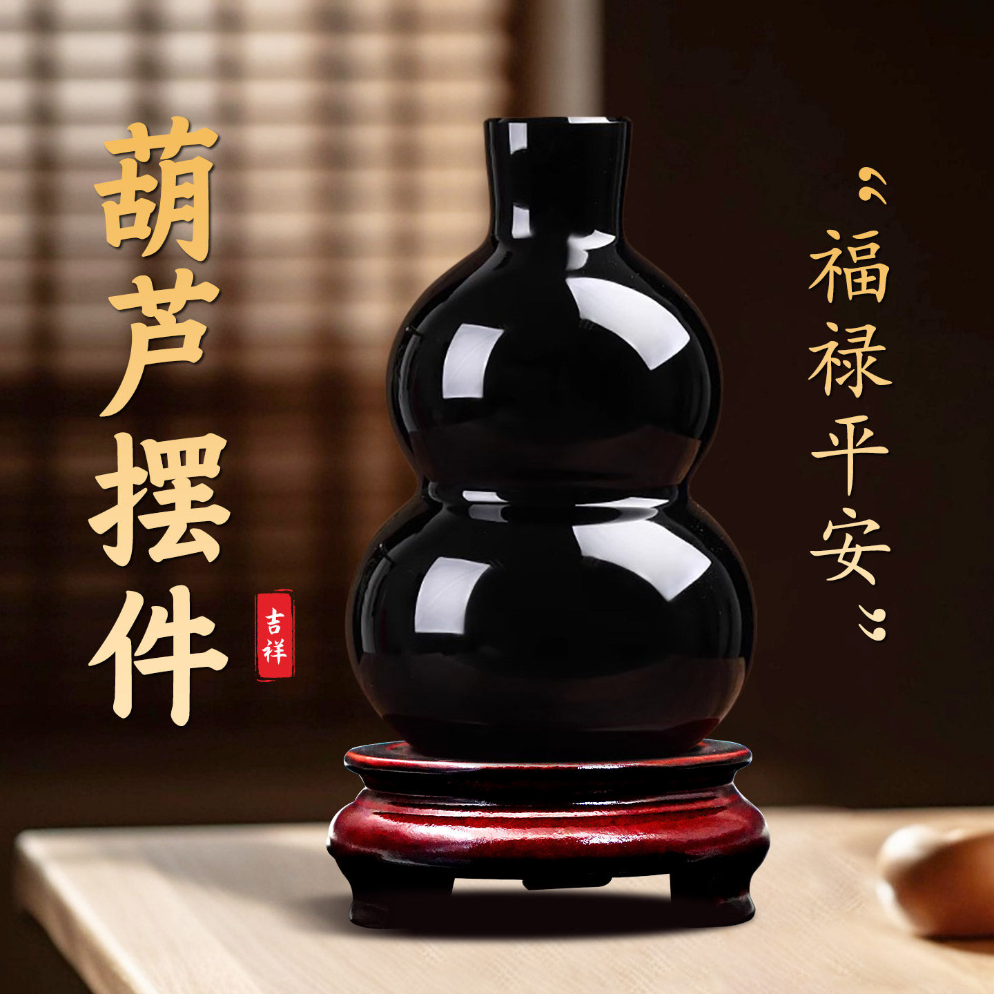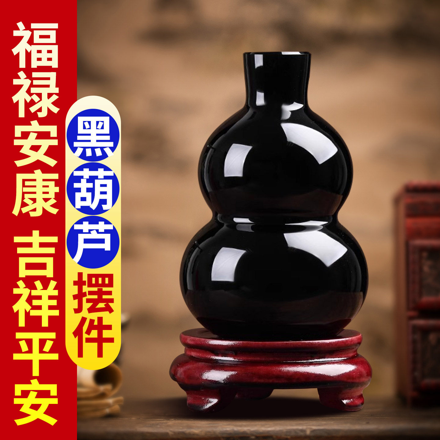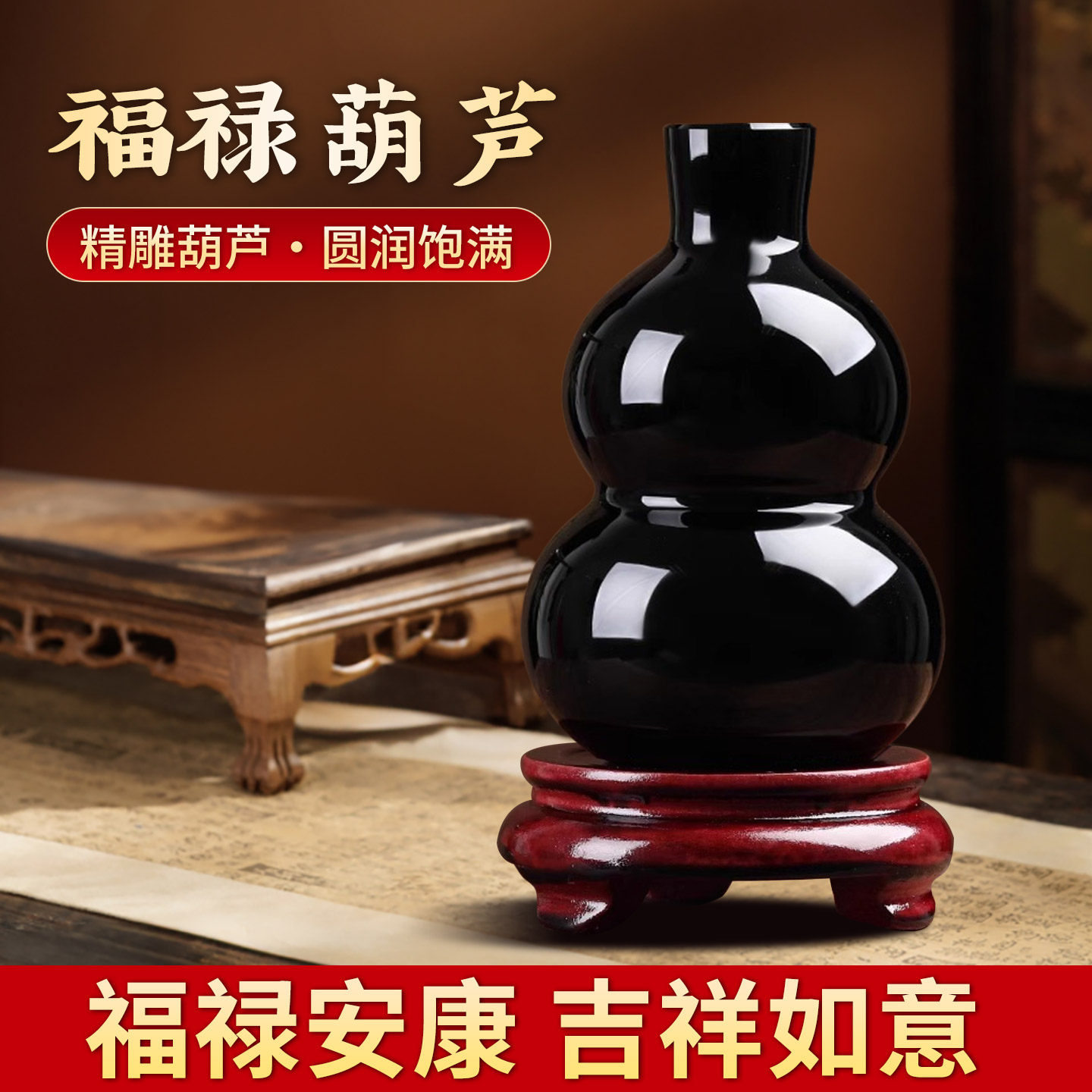 葫芦黑曜石福禄摆件黑色水晶小葫芦黑玉葫芦招财进宝心经葫芦摆件