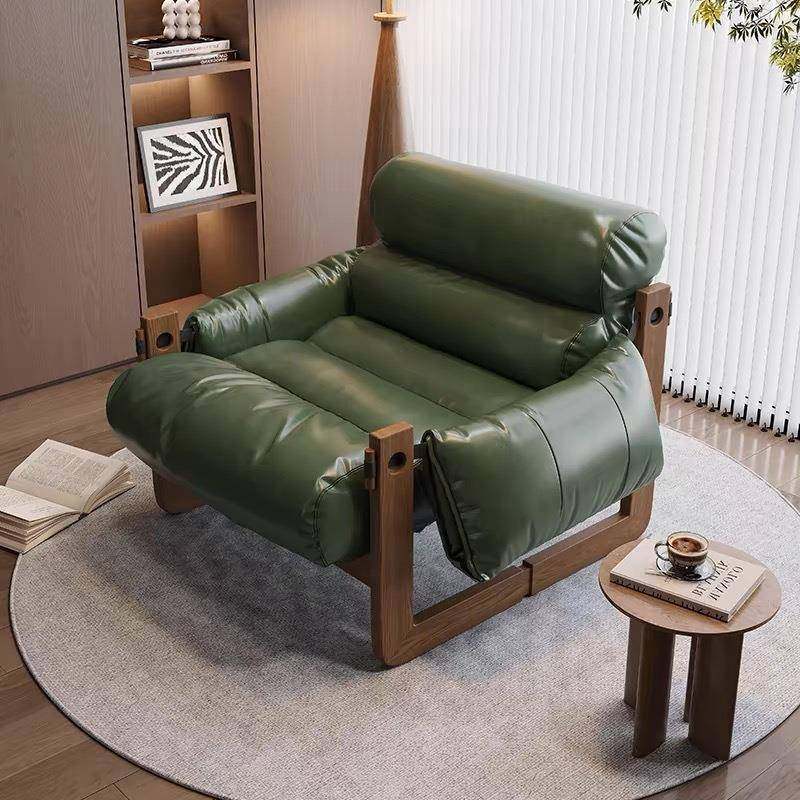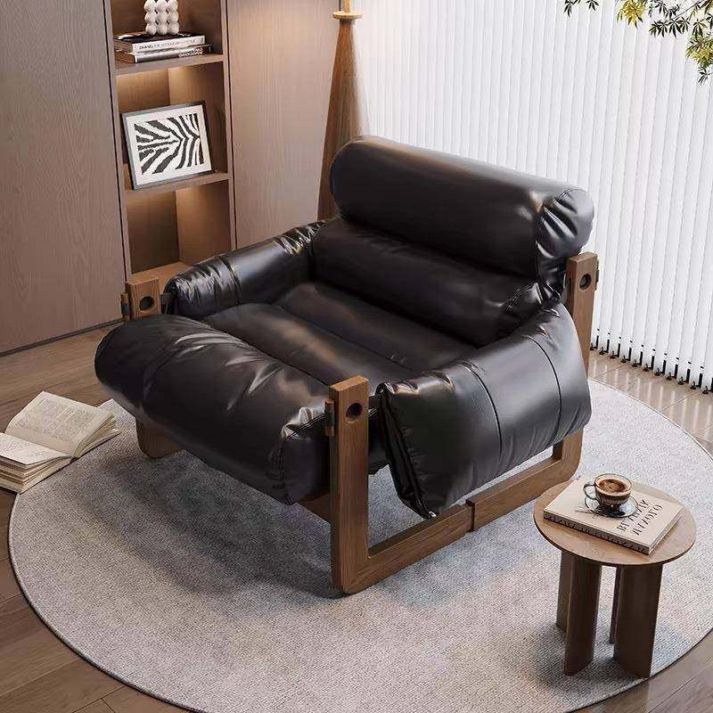 实木泽西岛中古风单人躺椅沙发客厅家用休闲现代简约复古休闲椅