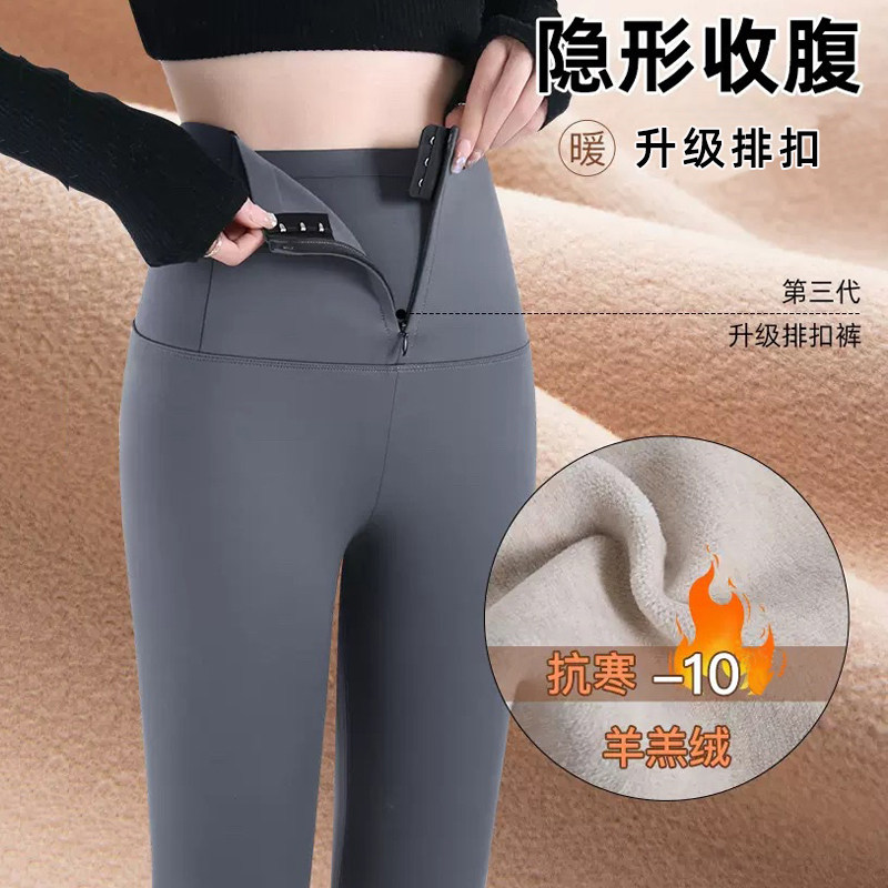 打底裤冬季加绒加厚保暖瑜伽裤高腰收腹提臀排扣拉链鲨鱼裤女
