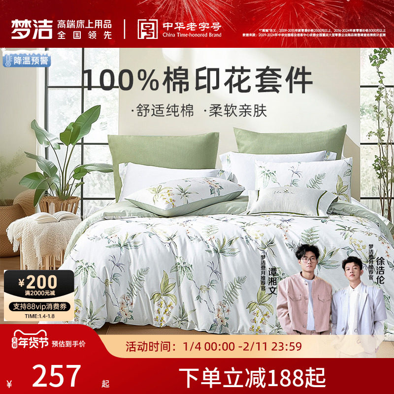梦洁床上三四件套纯棉四季通用全棉秋冬学生被套床单家用床品套件