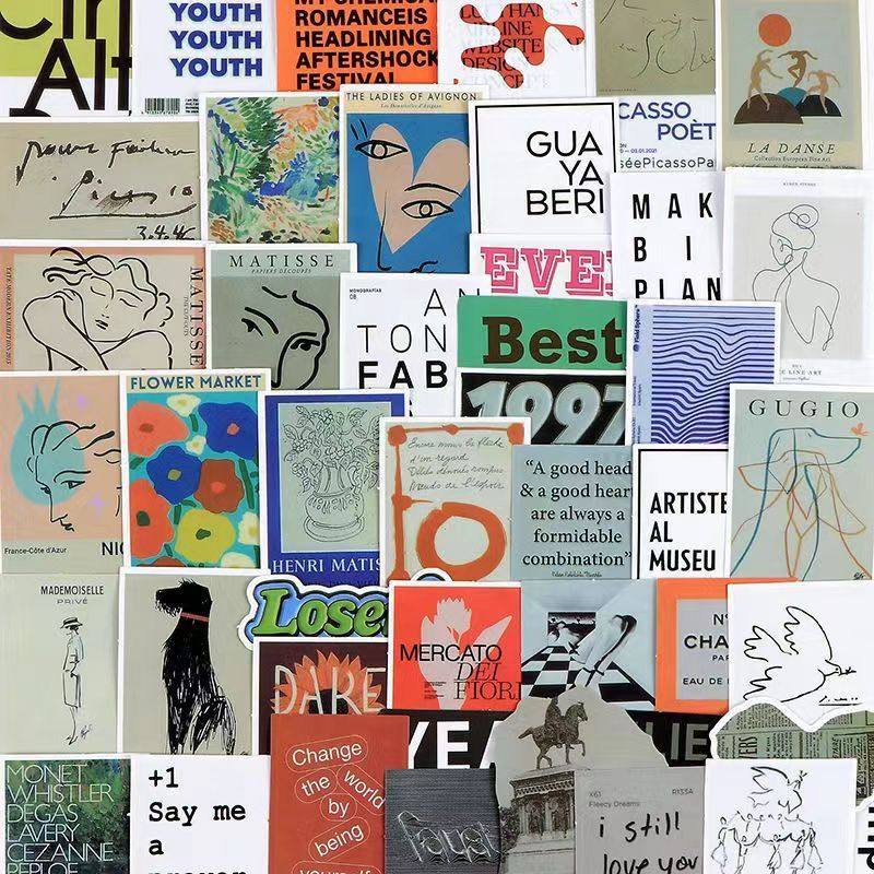 208张韩系ins风贴纸美式英文素材手帐英伦复古报纸平板行李箱装饰