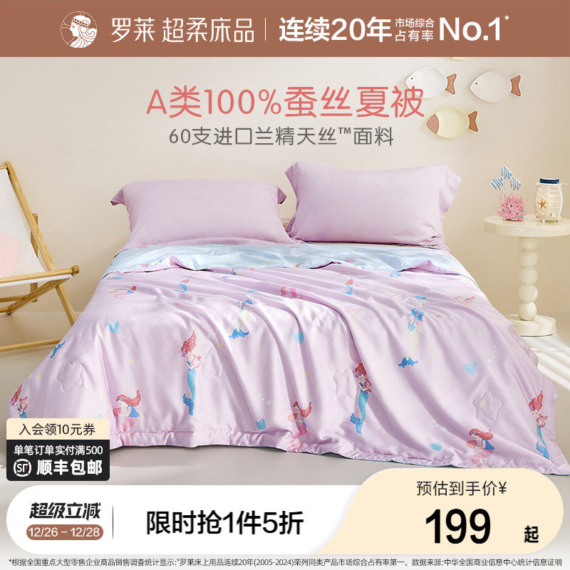 罗莱家纺儿童100%蚕丝被子被芯天丝夏凉被可水洗空调被夏季可机洗