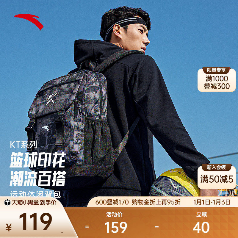 安踏双肩包男黑色健身休闲大容量户外轻量篮球背包旅游运动登山包