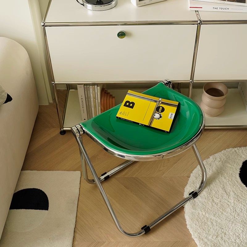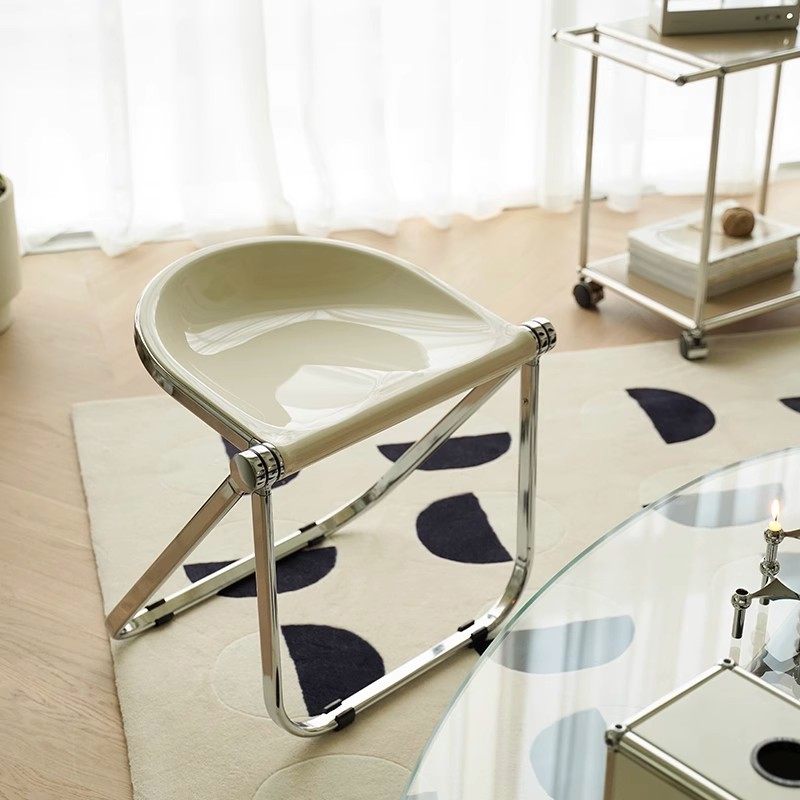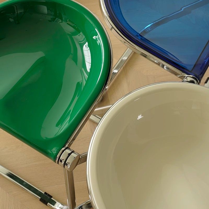 ins网红中古餐椅奶油风透明椅子可折叠凳子梳妆凳化妆椅叠放收纳