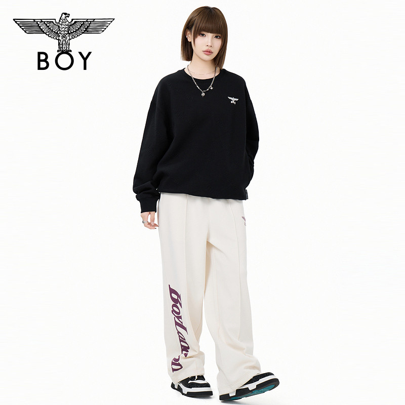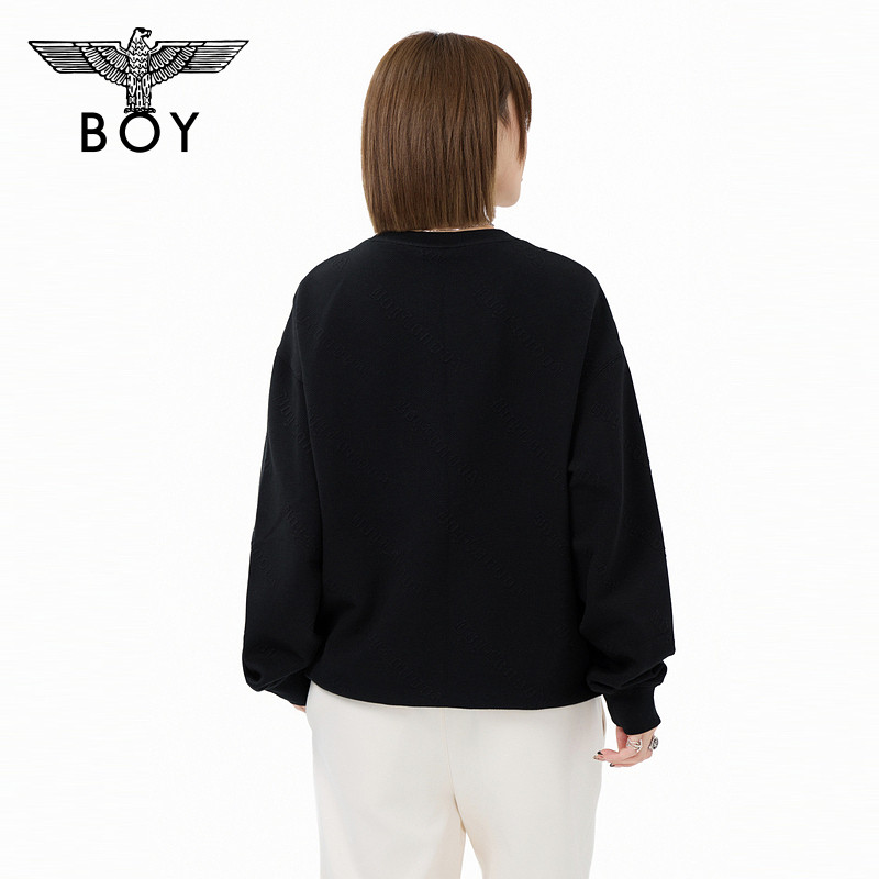 【隐序暗纹】BOYLONDON街头潮牌提花情侣款圆领套头卫衣N03065