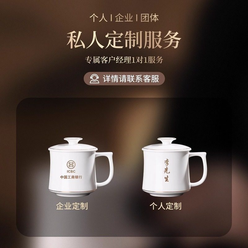 羊脂玉白瓷茶杯家用大容量陶瓷泡茶杯办公会议个人水杯带盖马克杯