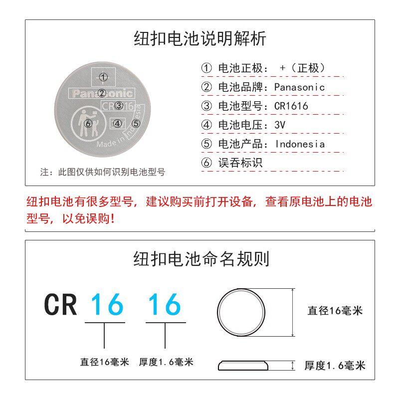 松下原装进口 CR1616 纽扣电池 3V 适用老凯越 别克 本田 思域 锋范 雅阁 铃木 汽车钥匙遥控器