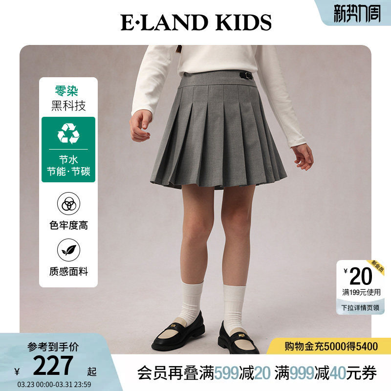 【零染科技】eland kids衣恋童装女童短裙春秋休闲学院风百褶裙子