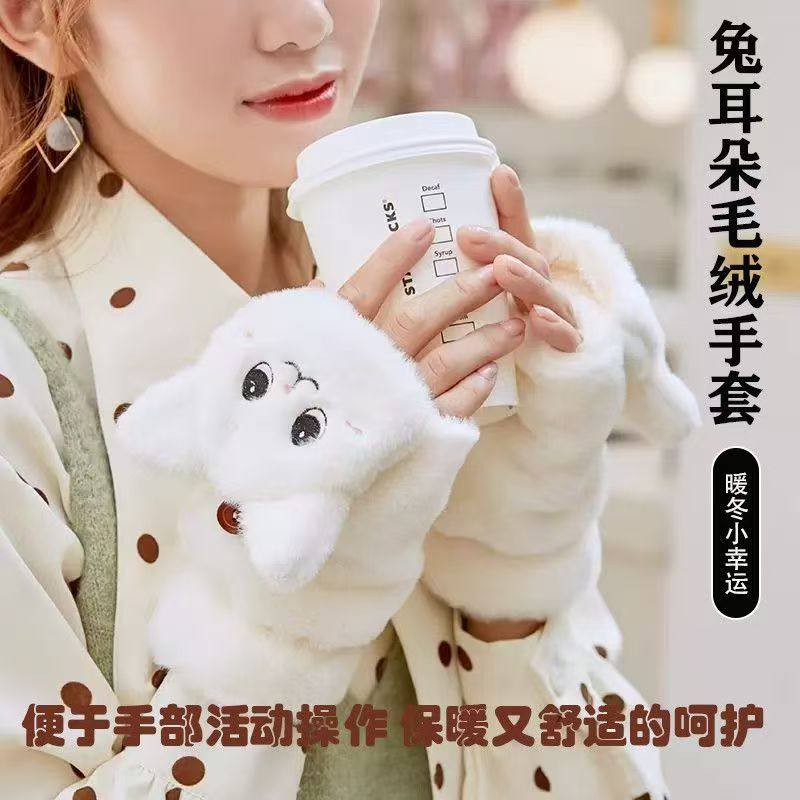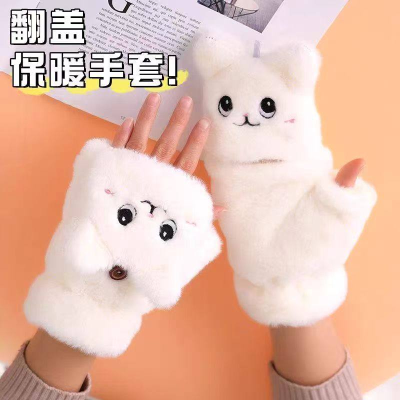 猫猫手套女秋冬儿舒适可爱韩版卡通加绒情侣保暖毛茸茸加厚半连指