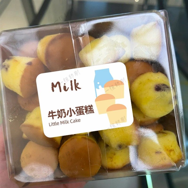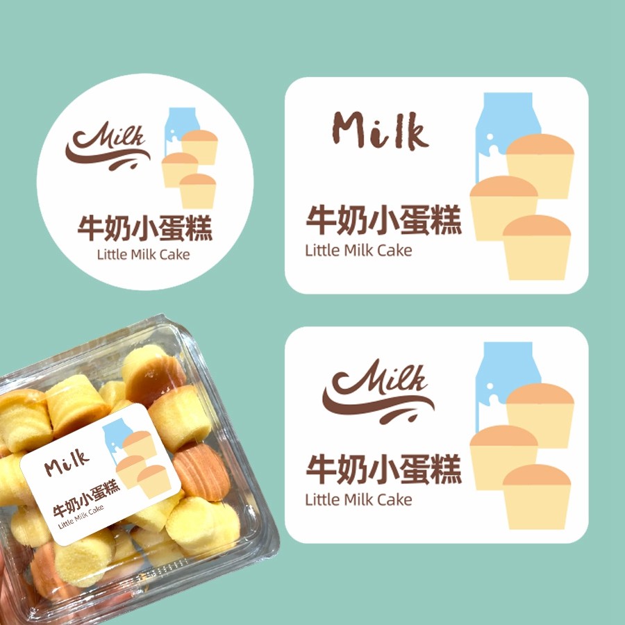 牛奶小蛋糕不干胶贴纸迷你小鸡蛋仔老蛋糕长方形标签腰封烘焙m