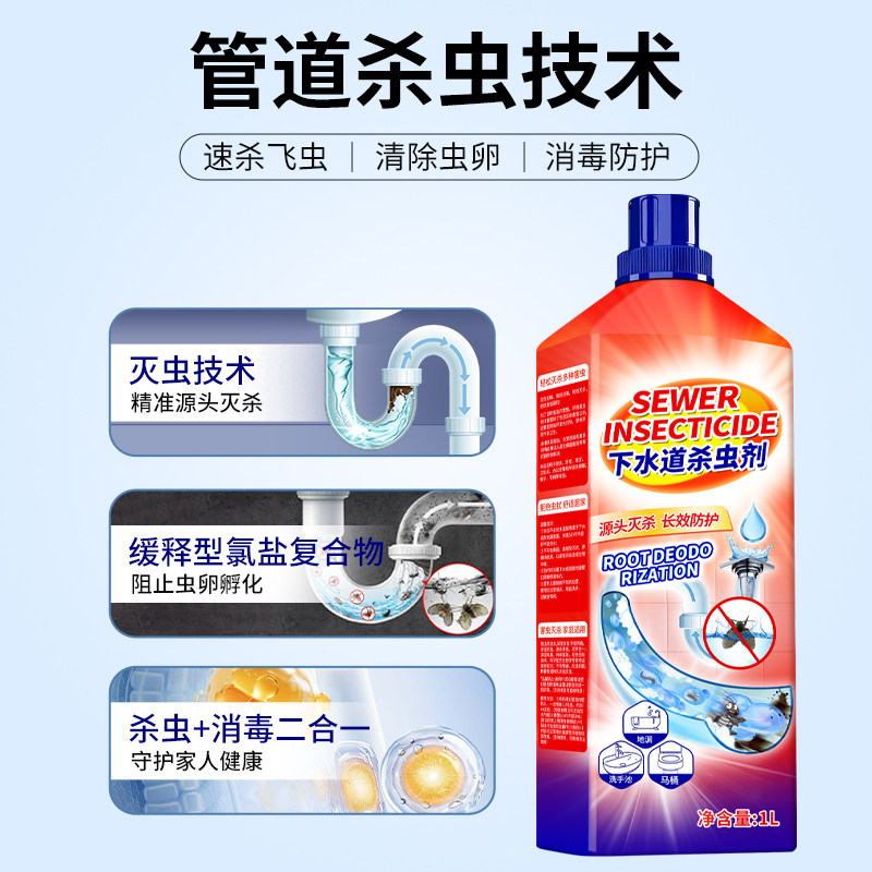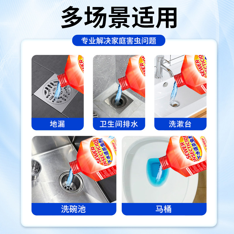 下水道小飞虫灭杀神器杀虫剂室内厕所管道疏通剂除臭蟑螂蚂蚁蜈蚣