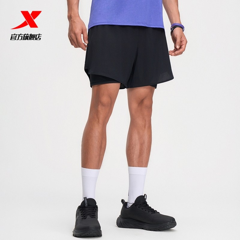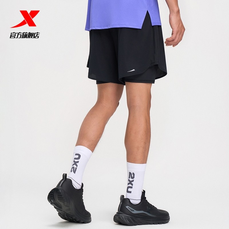 李宁跑步短裤男款速干马拉松田径运动三分裤夏季假两件带内衬健身