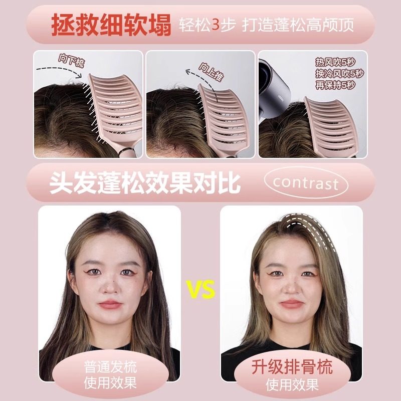 排骨梳高颅顶蓬松头发梳子女士专用长发卷发造型大弯梳头皮按摩梳