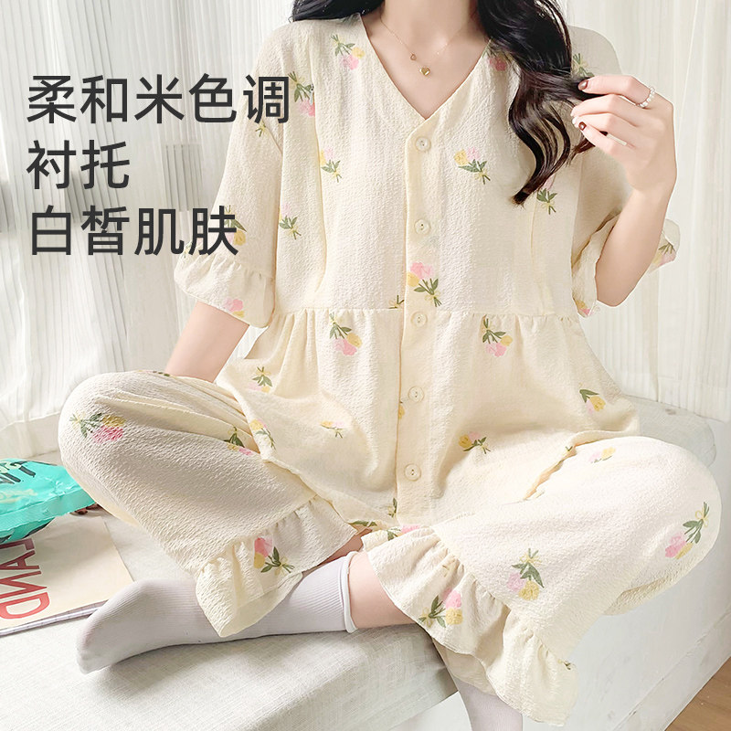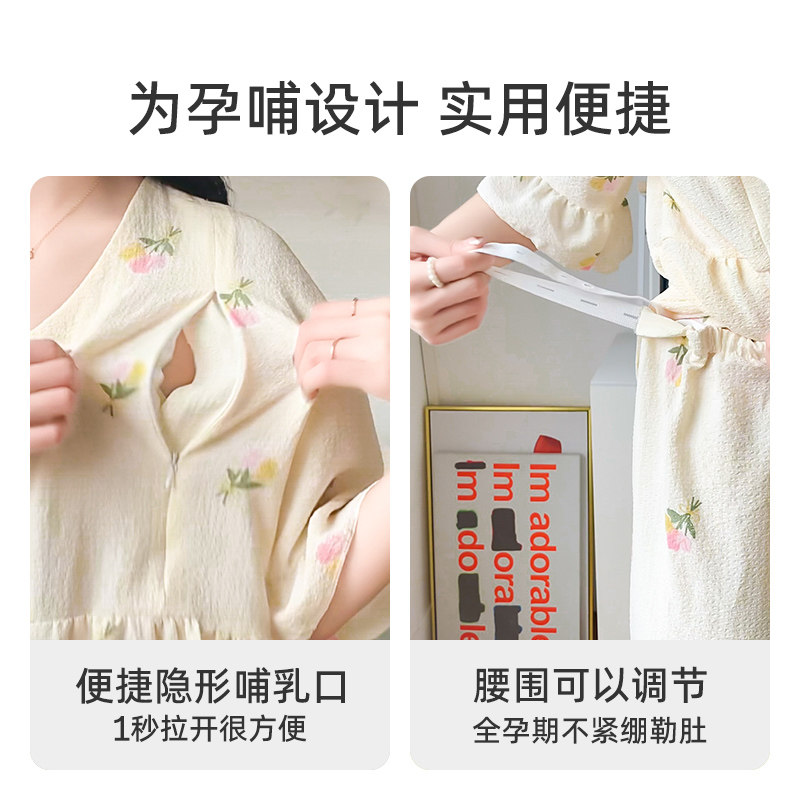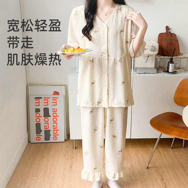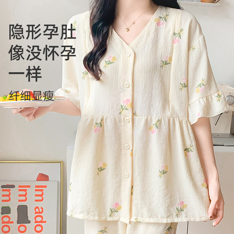 婧麒月子服夏季薄款产后孕妇睡衣女4月份5产妇喂奶哺乳短袖家居服