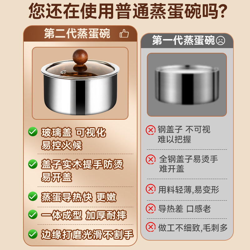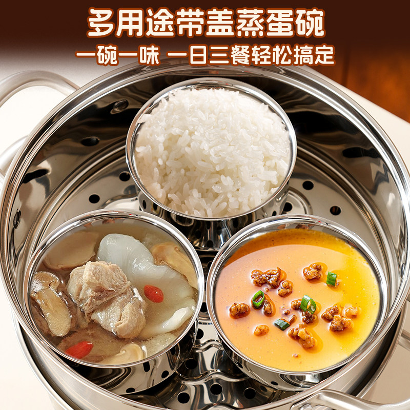 蒸蛋碗304不锈钢蒸碗隔水炖蒸鸡蛋羹专用碗带盖宝宝辅食蒸蛋汤碗