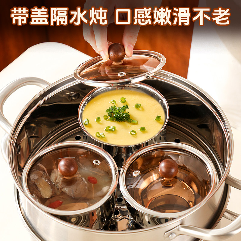 加厚304钢身 透气玻璃盖 蒸炖导热快