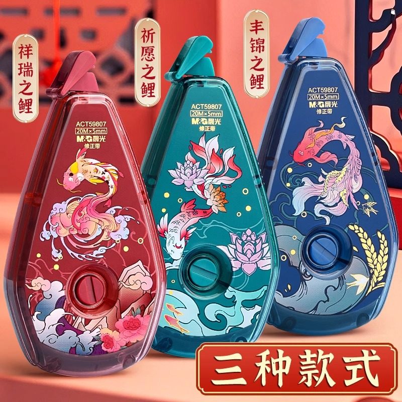 晨光锦鲤修正带小学生专用修正带初中生专用涂改带大容量修正贴静音改正带便携涂改液女生高颜值官方旗舰店